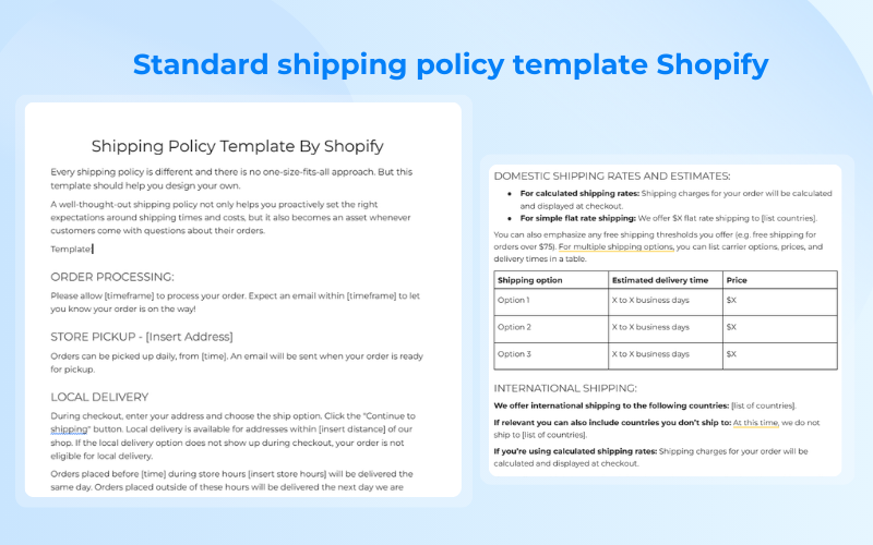 Shipping page template Shopify