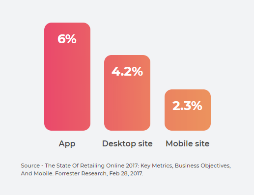 Previously when it comes to mobile commerce, there was a performance gap between the web and native apps. A web-based store help retailers reach a much broader audience on mobile, but it’s slow to load and less compatible with smaller-screen devices. Struggling to work properly across a variety of network conditions and devices, websites only managed to convert 2.3% of visitors on mobile browsers. Meanwhile, apps provide superior experience that resulted in 6% conversion rate, which is nearly 3 times those of mobile web (According to Forrester).